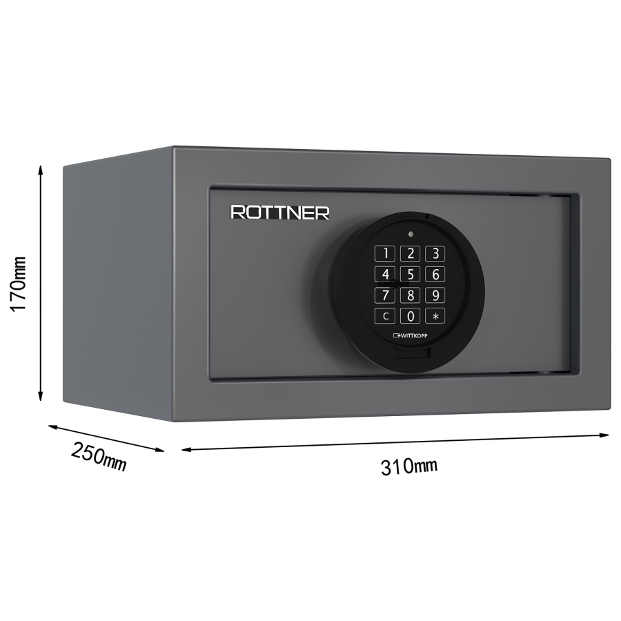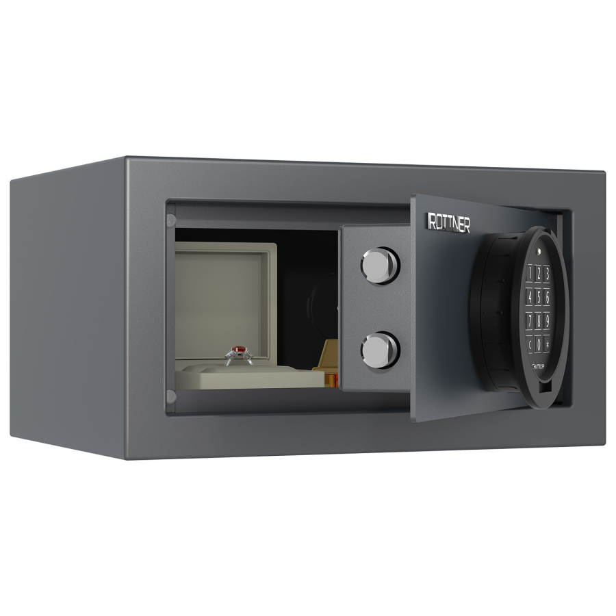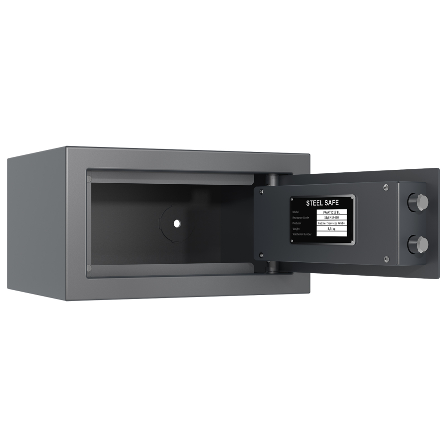 • certifikovaný zesílený elektronický trezorový zámek (napájení 9V baterií, která se nachází za výklopnou klávesnicí)