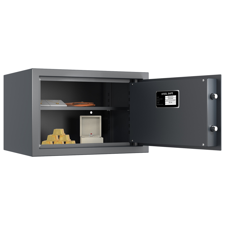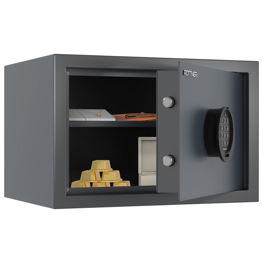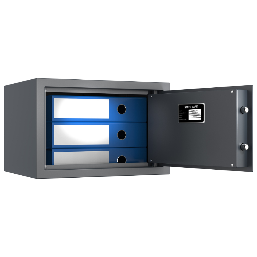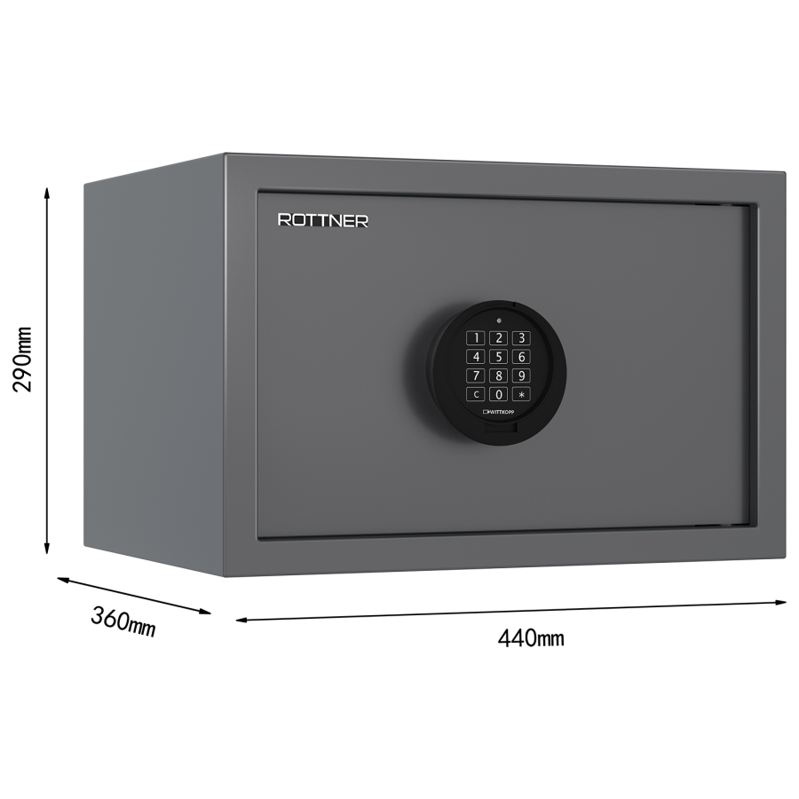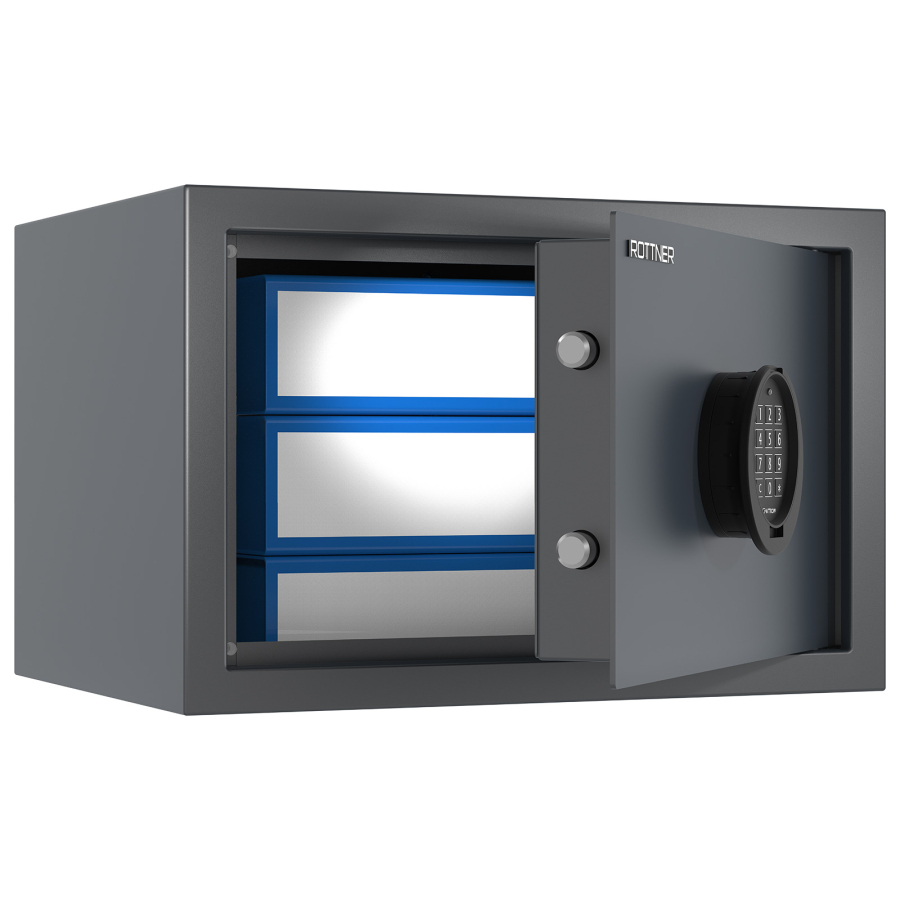 • certifikovaný zesílený elektronický trezorový zámek (napájení 9V baterií, která se nachází za výklopnou klávesnicí)